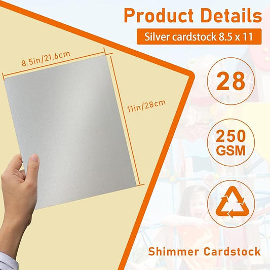 28 Sheets Silver Shimmer Cardstock 8.5 x 11 Craft Paper, 92lb Premium Glossy Grey Paper Card Stock for Wedding, Scrapbooking, Business Cards, Making Cards, Menus