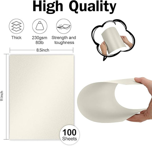 120 Sheets Cream Shimmer Cardstock 8.5 x 11 Inch Metallic Paper, 250gsm/92lb Double Sided Ivory Card Stock Pearlescent Paper for Invitations, Certificates, Crafts, DIY Cards