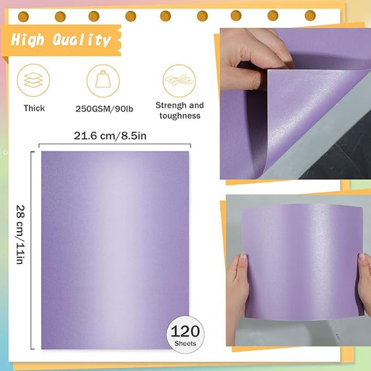 120 Sheets Purple Shimmer Cardstock 8.5 x 11 Inch Metallic Paper, 250gsm/92lb Double Sided Card Stock Pearlescent Paper for Invitations, Certificates, Crafts, DIY Cards