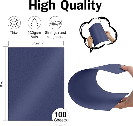 100 Sheets Navy Blue Shimmer Cardstock 8.5 x 11 Blue Paper, Goefun 80lb Card Stock Printer Paper for Christmas, Invitations, Certificates, Crafts, Wedding