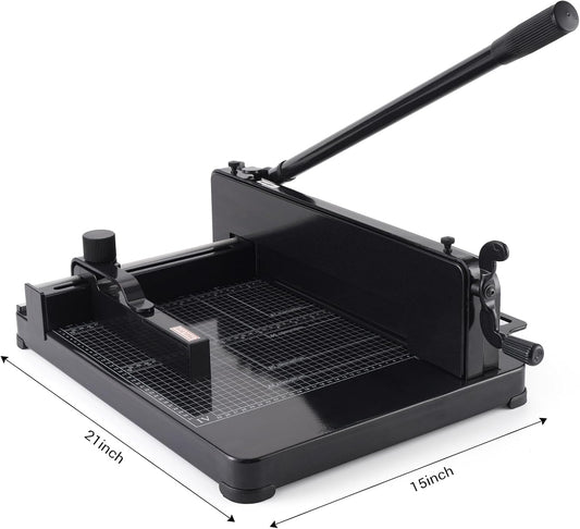 HFS(R) Heavy Duty Guillotine Paper Cutter Bundle - A4, 12'' Blade, 400 Sheet Capacity, Solid Steel Construction with Replacement Cutting Stick