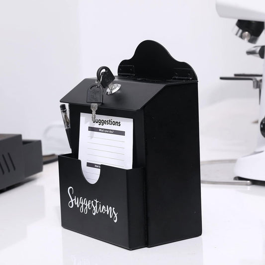 Suggestion Box with Slot and Lock Metal 8.4 x 5.8 x 7.0 inch Built-In Storage Compartment 50 Suggestion Cards Tip Jar Ballot Voting Prayer Comment Teacher Mailbox Booth Classroom Restaurant