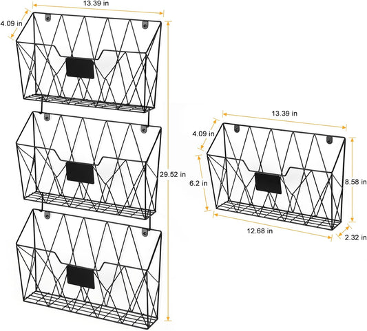 Hanging Wall File Holder Wall Mount Metal Wall File Organizer 3 Pockets Mail Organizer with Hooks for Office Home,Black