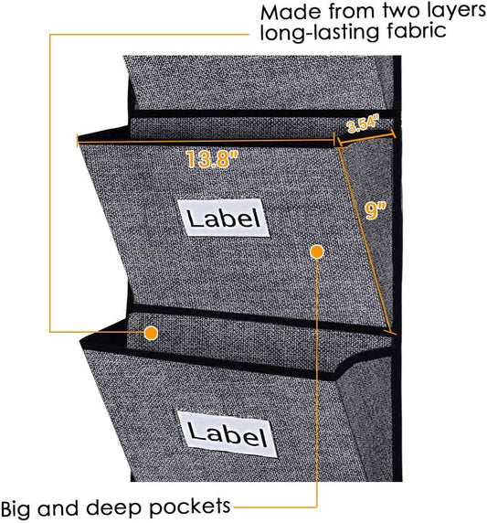 homyfort Over the Door File Organizer Hanging File Folders, Wall Organizers and Storage for Mail, Magazine, Notebooks, Planners, Office, Classroom, 5 Extra Large Pockets (Black with Pattern)