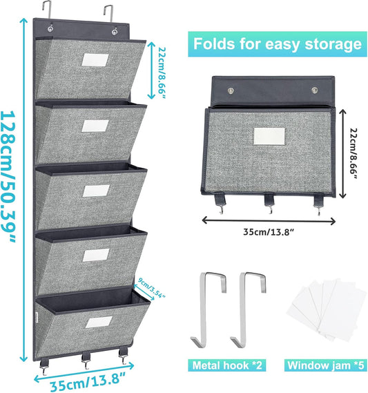 homyfort Over the Door Wall File Organizer, Hanging File Folders Organizer with 5 Large Pockets for Office and Back to School Supplies, Papers, Charts, Mails, Magazine Storage and Organization