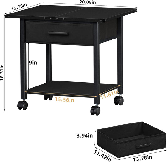 Lerliuo Under Desk Rolling Printer Stand with Drawer, 2-Tier Industrial Mobile Printer Table Desk with Storage Shelf and Steel Frame, Printer Cart Holder with Lockable Wheels for Home, Office (Black)
