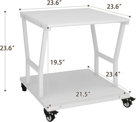 Natwind 2-Tier Large Printer Stand,23.6"x23.6"x29.5" Heavy-Duty Printer Table Cart with Paper Storage Shelf & Wheels,Ideal for Home Office Laser Printers, Copiers (White)