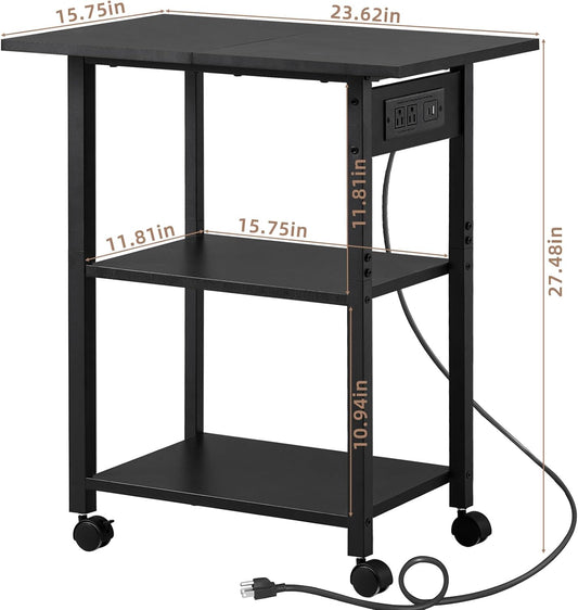 Mobile Printer Stand, 3-Tier Industrial Printer Cart with Power Outlets and 2 USB Ports, Rolling Printer Table on Wheels for Home Offices Kitchen Organization Rack, Black PTHB78E01