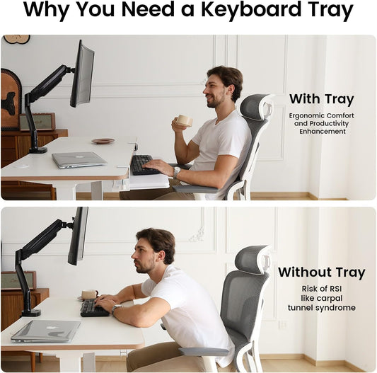 suptek Keyboard Tray Under Desk Pull Out with C Clamp Mount, Computer Keyboard & Mouse Tray, 25.6 (30 Including Clamps) x 11.8 inch Slide-Out Platform Computer Drawer for Typing, Carbon White, DSF1DJW