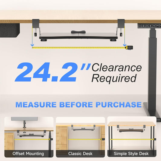 Desk Extender Tray, 24" x 12" Clamp On Desk Shelf, Desk Extension with Laptop Holder, Table Desk Arm Rest, Clamp On Keyboard Tray for Office and Home, Workstation Organizer, Medium, Black