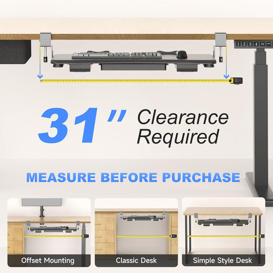 Large Keyboard Tray Under Desk, Adjustable Keyboard Tray with C-Clamp Hardware 29.5″ W x 9.5″ D Slide Out Computer Keyboard & Mouse Tray for Typing Home Office Black