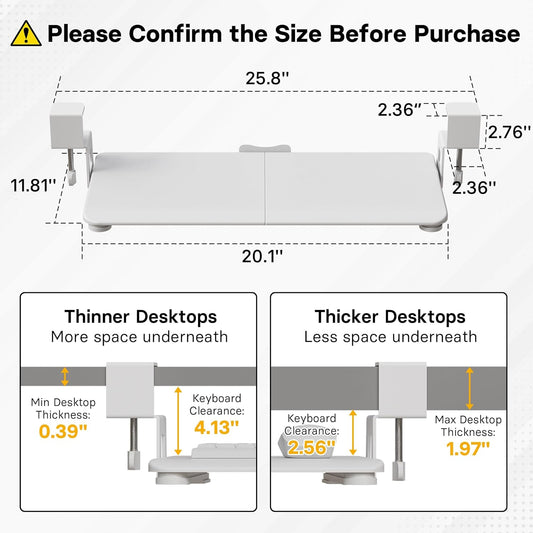 Desk Extender Tray, 24" x 12" Clamp On Shelf, Desk Extension with Laptop Holder, Table Arm Rest, Clamp On Keyboard Tray for Office and Home, Workstation Organizer, Medium, White