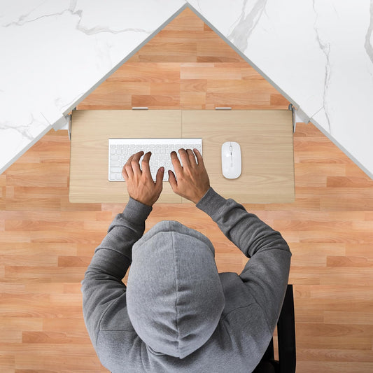 ETHU Keyboard Tray Under Desk, Pull Out Keyboard & Mouse Tray with C-clamp, Ergonomic Desk Keyboard Tray Slide Out, Pull Out Platform Drawer for Home and Office(Oak)