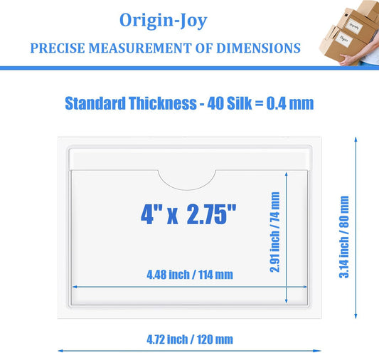 Origin-Joy 35 PCS Self Adhesive Index Card Pockets with Top Open, Clear Plastic Label Holder for Cards of Note, Library and Business, Adhesive Label Pockets & Card Holder (4 x 2.75 inch)