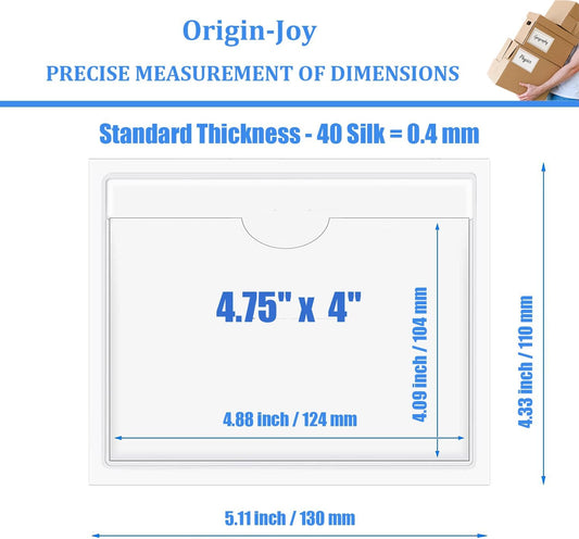 Origin-Joy 35 PCS Self Adhesive Index Card Pockets with Top Open, Clear Plastic Label Holder for Cards of Note, Library and Business, Adhesive Label Pockets & Card Holder (4.75 x 4 inch)
