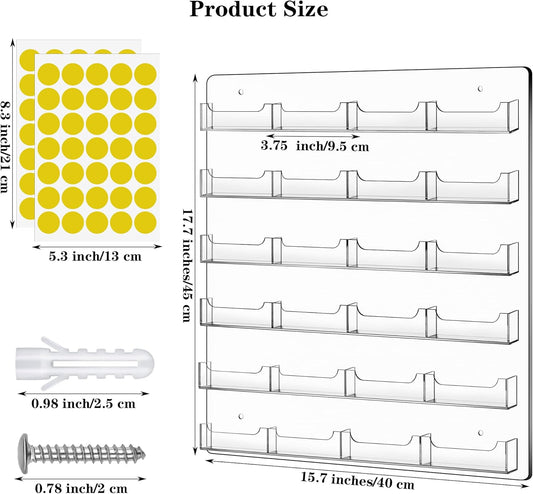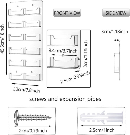 Qunclay 2 Pack 12 Pocket Acrylic Business Card Holder Wall Mount Clear Sticker Display Rack Vertical Multiple Gift Card Rack Display Stand for Home Documents Brochures Hanging Organizing Office Table