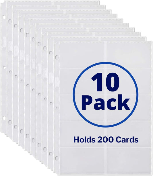 Dunwell Business Card Holder Sleeves (10 Pack for 200 Cards), Heavyweight Plastic Sheet Protect, Each Sleeve Holds 20 2x3.5 Namecards, 3-Hole Punched, Fits 3-Ring Binders