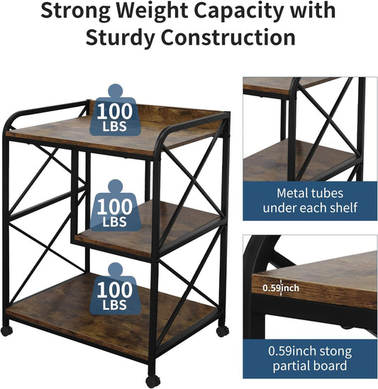 Printer Stand with Storage Shelf,3 Tier Printer Cart with Wheels,Mobile Printer Table for Home Office,Stands for Printer Heat Press Scanner Fax,Industrial Style (Brown)