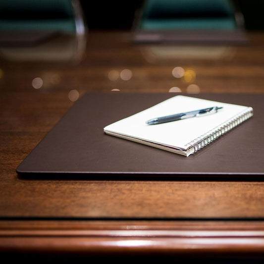 Dacasso 20" x 16" Brown Leatherette Luxury Conference Pad - Faux Leather Desk Blotter for Writing - Boardroom Organization & Executive Table Decor