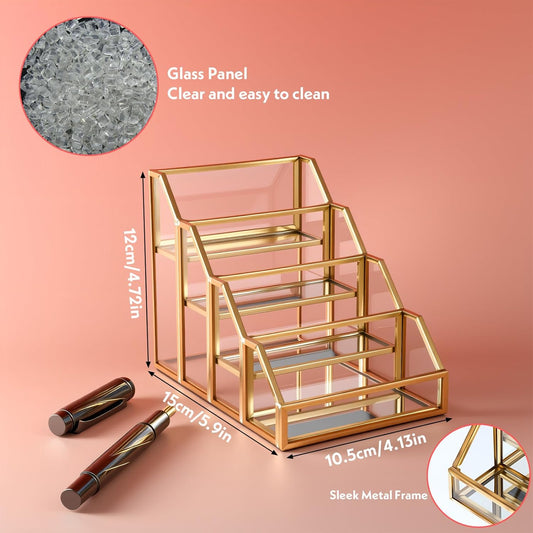 4 Slots Glass Business Card Stands for Display, Desktop Business Card Holder with Gold Metal Frame, Clear Name Cards Organizer for Office, Exhibition, and Meetings (4.13" L x 5.9" W x 4.72" H)