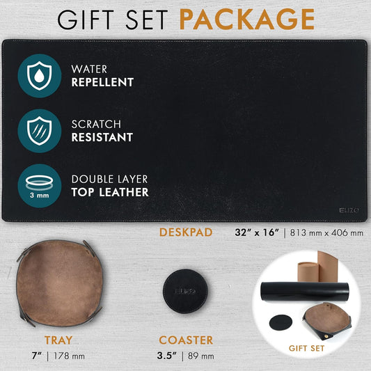 Elizo Leather Desk Mat Desk Pad Blotter Set - Real Full-Grain Leather (32x16) 2-Layer Genuine Desk Cover Protector & Large Mouse Pad | Computer Keyboard Desk Accessories for Office & Home