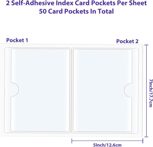 TOTiyea 50 Pack Clear Adhesive Pockets for Index Card Sleeves and Planners, Top Loading, Plastic Label Holder for Note Cards (5x7 Inches)