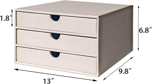 UnionBasic Document Organizer, 3-Drawer File Cabinet Document Storage Box, Office Desktop Filing Organizer, Beige
