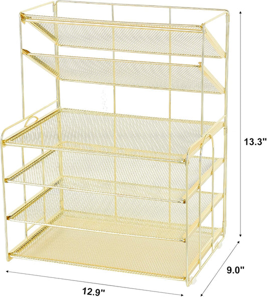6-Tier Letter Tray Paper Organizer, Desk Organizers and Accessories, Desktop File Organizer, Office Desk Accessories for Office Supplies (Gold)