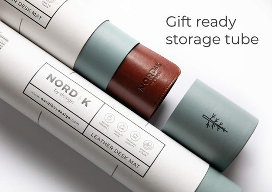 Nordik Leather Desk Mat - Whiskey Brown - Cable Organizer - Premium Mouse Mat & Desk Pad Protector - 35 X 17 Inch - Felt Vegan Leather - Large Office Mouse Pad & Blotter
