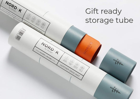 Nordik Leather Desk Mat Cable Organizer - Tangerine Orange 35 X 17 inch - Premium Extended Mouse Mat for Home Office Accessories - Non-Slip Vegan Leather Desk Pad Protector & Desk Blotter Pad