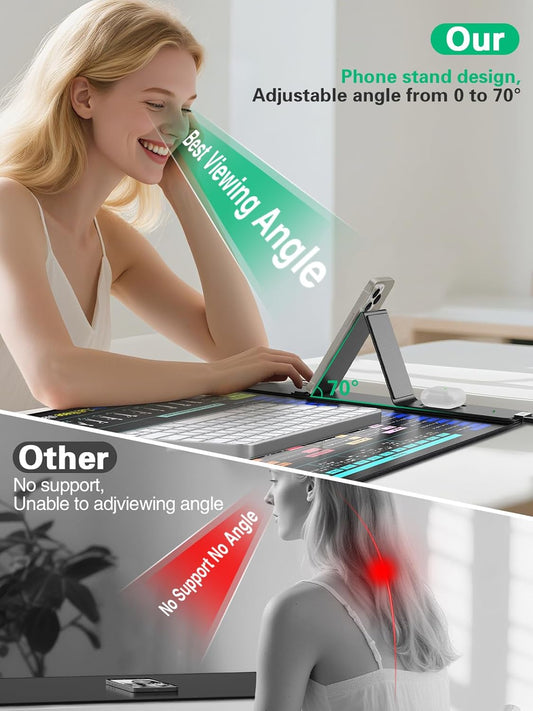 Mouse Pad for Excel/Word/PowerPoint/Windows Shortcut Keys, Desk Pad with Wireless Charger Phone Stand, XXL Large Excel Cheat Sheet Mousepad | PC Office Spreadsheet Desk Mat | Non-Slip Stitched Edge