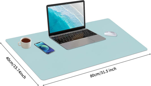 Leather Desk Pad Blotter,Mouse Pad,Office Desk Mat, Non-Slip PU Leather Desk mat,Large Desk mat,Waterproof Keyboard mat for Office/Home/Decor (Grey Blue,35" x 17")