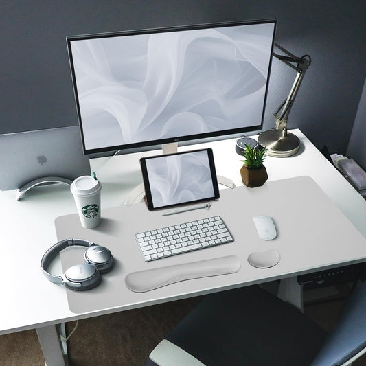 Bloss Leather Desk Pad and Keyboard Wrist Rest, Large Mouse Pad + Keyboard Pad+Mouse Wrist Support, Non-Slip Desk Mat Protector for Office, Home(31.5×15.7 Inches, Light Grey)