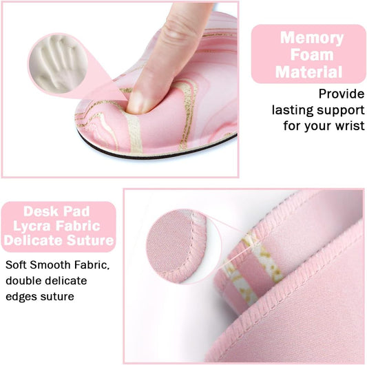 Keyboard Mouse Pad Set, Extended Mouse Pad+Keyboard Wrist Rest Support, Memory Foam Ergonomic Easy Typing, 3Pcs (35.4×15.7 in) Desk Pad Set for Home Office Study Game- Pink Gold