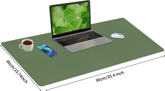 Bloss Olive Green Desk Mat 35.4" x 15.7", Desk Matt for Desktop, Large Leather Desk Pad, Waterproof Desk Pad Mat, Office Supplies for Women