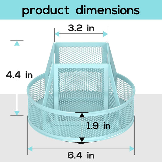 YINGHUA Metal Mesh Desk Organizer with 5 Compartments and Rotating Pencil Holder Pen and Stationery Organizer for Office Home School Anti Slip Base Blue