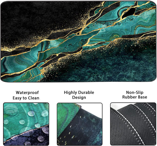 Keyboard Mouse Pad Set, Extended Mouse Pad+Keyboard Wrist Rest Support, Memory Foam Ergonomic Easy Typing, 3Pcs (35.4×15.7 in) Desk Pad Set for Home Office Study Game - Malachite Marble