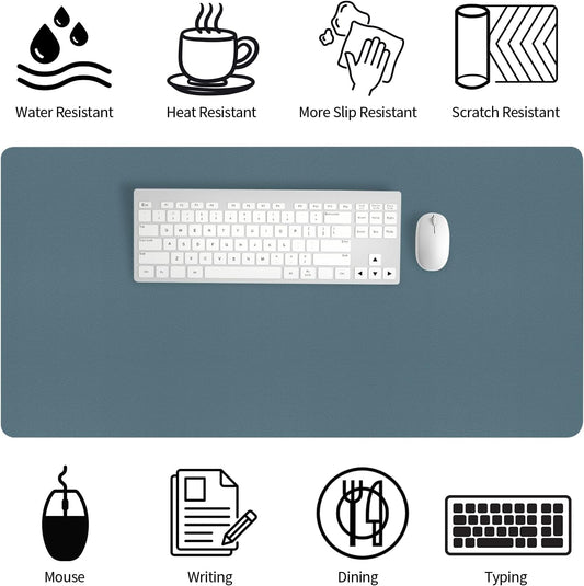 Desk Pad Protector, Leather & Suede Desk Mat, Non-Slip Desk Pad Mat, Large Mouse Pad, Waterproof Desk Blotter Mat, Desk Cover for Office, Home (Aqua Frost Blue, 23.6" x 13.7")