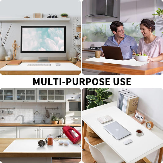 Large Desk Pad 47.2" x 17", Leather Desk Mat Protector, Non-Slip PU Leather Desk Blotter Pad, Large Mouse Keyboard Mat, Waterproof Desk Cover Pad for Office & Home (White)