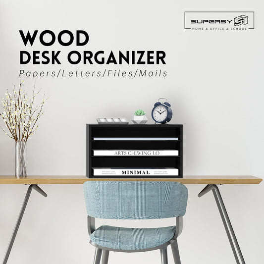 SUPEASY Wooden Desk Organizer - 3 Tier Paper File Organizer for Office, School & Home, Black
