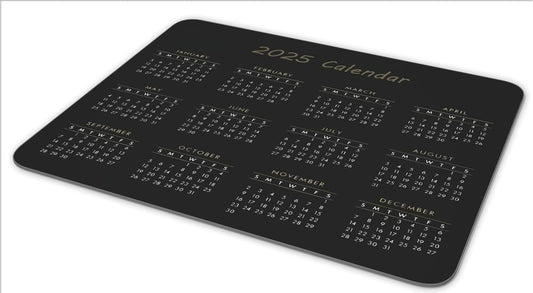 Calendar Mouse Pad, Gaming Mouse Mat with Custom Design, Non-Slip Rubber Base MousePads for Office Home Laptop Travel, 9.5"x7.9"x0.12" Inch (2025 Calendar Black)