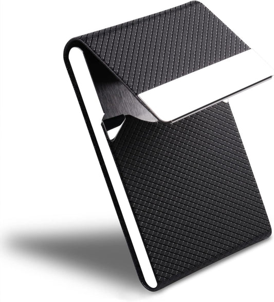 Business Card Holder, Metal Slim Business Card Case, Pocket Card Holder for Women or Men, PU Leather Business Card Holder Case RFID Blocking Name Card Holder with Magnetic Closure, Black Carbon
