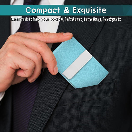 Business Card Holder with Ultra Slim Design, Business Card Case with Premium PU Leather, Suit Pocket Metal Card Holder for Women/Men, Magnetic Closure Quick Access Cards, Small and Easy to Carry
