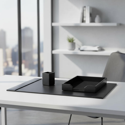 Dacasso Black Bonded Leather Luxury 3 Piece Desk Set - Blotter Pad & Desk Mat Organization Essentials - Executive Decor and Surface Protector