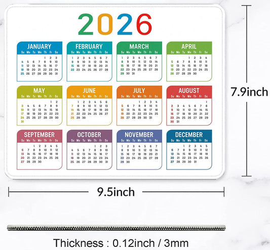 2026 Calendar Mouse pad, Gaming Stitched Edge Computer Accessory Mouse Pad, Rectangular Anti Slip Chloroprene Rubber Mouse Pad for Office and Home Use (White Calendar Mouse Pad)