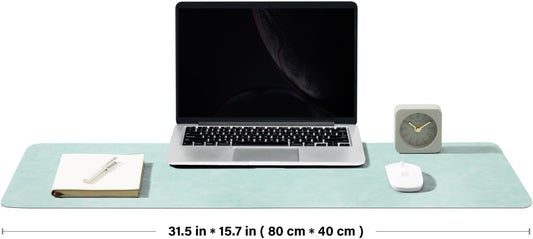 Distressed Leather Desk Mat - Non-Slip PU Desk Pad for Office and Home - Desk Organization and Accessories - Ideal for Large Mouse Pad and Desk Mats on Top of Desks(Mint Green,31.5"x 15.7")