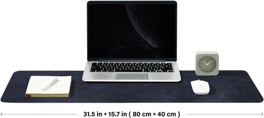 Distressed Leather Desk Mat - Non-Slip PU Desk Pad for Office and Home - Desk Organization and Accessories - Ideal for Large Mouse Pad and Desk Mats on Top of Desks(Navy Blue,31.5"x 15.7")