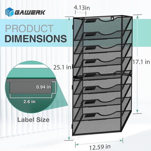 8-Tier Wall File Organizer Hanging Wall File Holder Wall Mount Paper Folder Organize, Mesh Magazine Document Mail Organizer Wall Organizer for Office School Home, Black