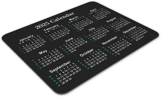 2025 Calendar Horizontal Non-Slip Rubber Mouse Pad, Calendar Black Mouse Mat Mouse Pad Office Gaming Mousemat 9.5 inch x 7.9 inch