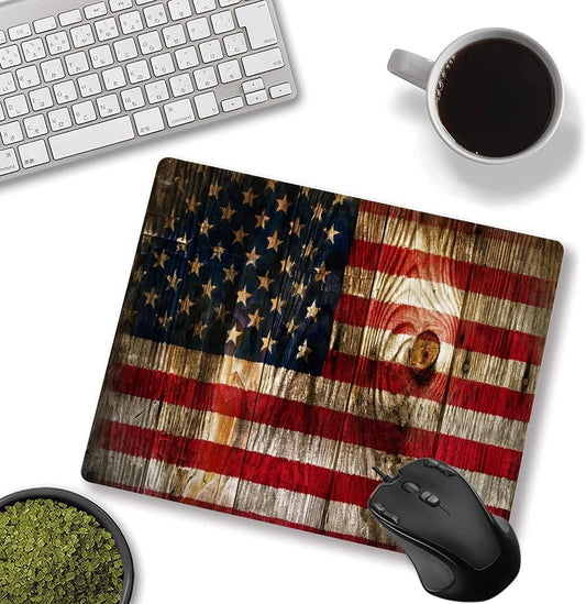 Customized Square Gaming Office Mouse Pad, Uniquely Designed Wood Grain American Flag Anti Slip Rubber Base Mouse Pad, Suitable for Desktop and Laptop Mouse Pads
